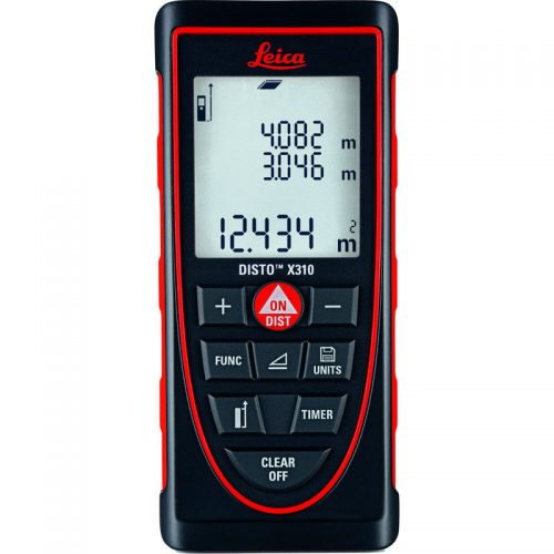 Leica Disto X310 adalah model kompak dan berguna dan memiliki fungsi yang menarik. Ini adalah satu-satunya model yang ketat dan debu jet air dilindungi untuk IP65 selain itu lulus uji jatuh ke 2m tingginya. Hal ini masih mudah digunakan selain menyediakan dan perhitungan pengurangan, luas dan volume untuk pengukuran lokasi yang cepat dan dapat diandalkan. Berkat tilt sensor terintegrasi, dapat mengambil jarak langsung dan pengukuran tinggi benar-benar tepat. 10 terakhir hasil disimpan dalam memori sistem. Unit mengandung Power Leica Rentang Teknologi ™ , Mode Horizontal Smart ™ , 4 baris layar menyala, pelacakan tinggi dan 360 ° tilt sensor. Multi-fungsi bagian akhir secara otomatis terdeteksi oleh sistem sehingga, bila digunakan, maka akan mempertimbangkan hal ini saat menghitung jarak. Sistem ini akurat untuk + / – 1mm di 80 meter akan melakukan sampai dengan 5000 langkah per set baterai dan bekerja dari 2 x 1, 5 volt baterai AAA.